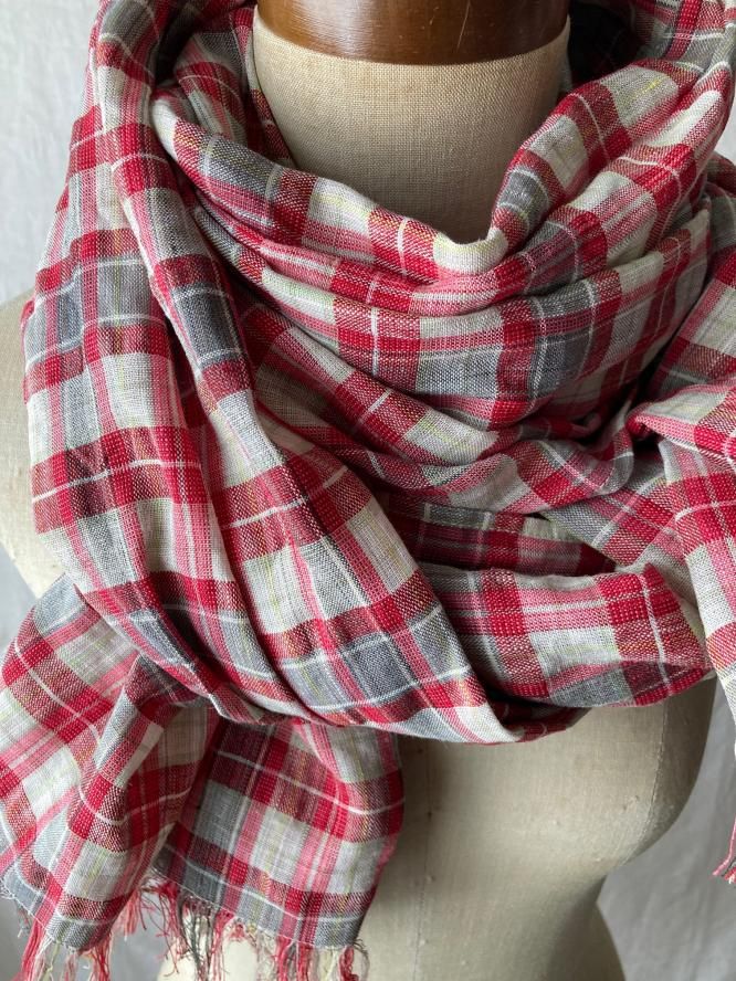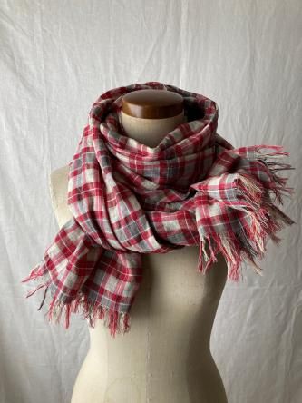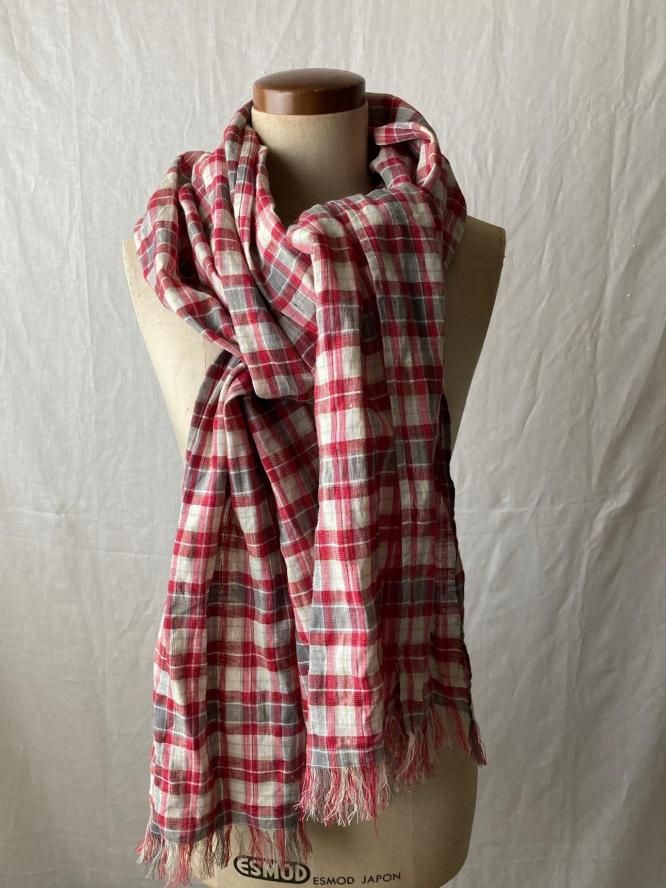 ÂçȽ¥¹¥È¡¼¥ë ¡ÔR¡Õ¡¡Linen check ¡¦Large stole¡¡Red¡ßBeige¡ßgray¡¡Ìó70Ñ¡ß200Ñ¡¡French linen100¡ó